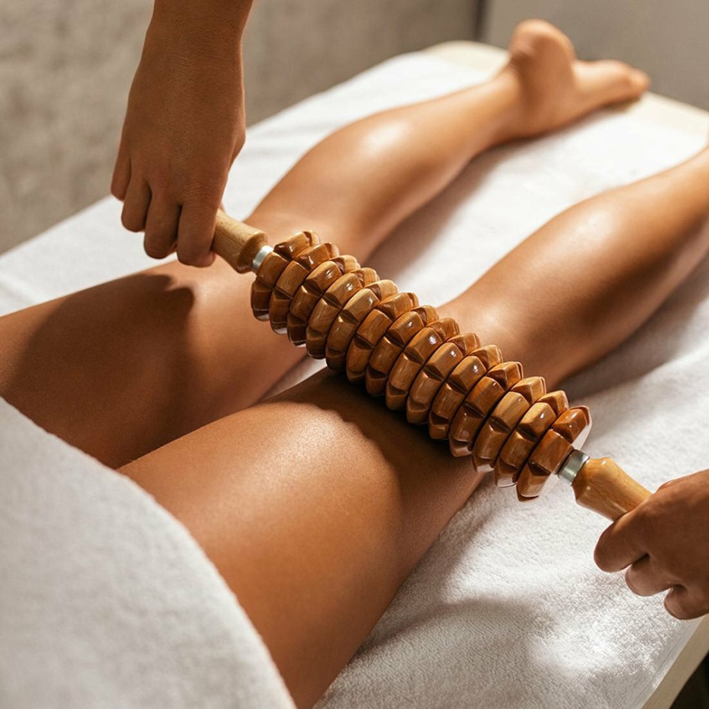 Une partie du massage s’effectue avec les outils de madérothérapie ,l’autre partie est effectuée avec les mains .